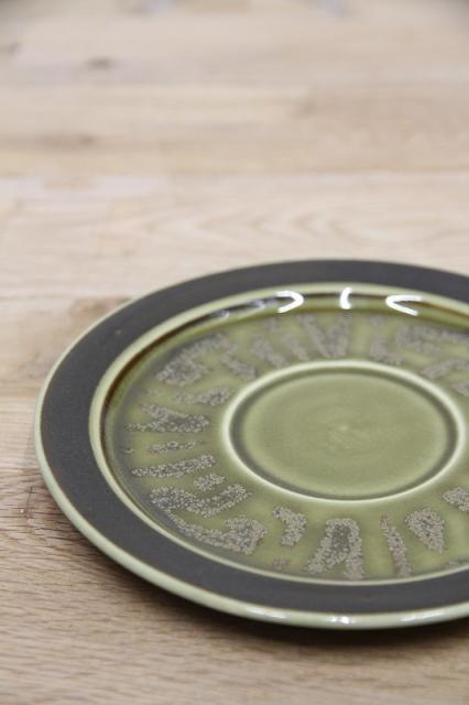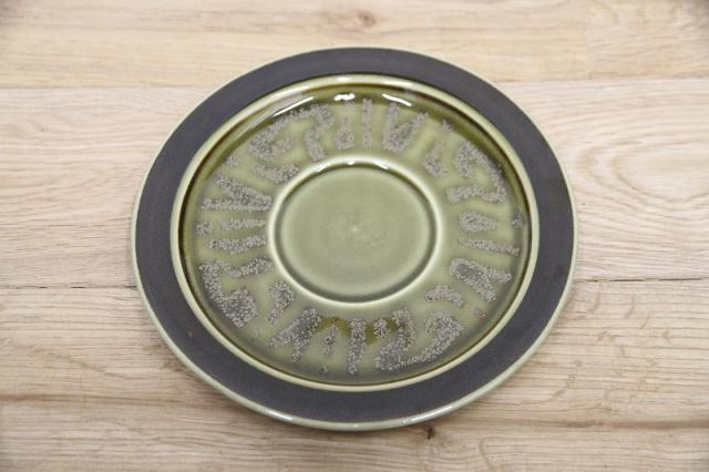 渋めな緑と茶の色の組み合わせが落ち着いた雰囲気ですので、和のテイストにもピッタリ。ソーサーだけなので、植物の受け皿などインテリアとしてお使いいただくのもおススメです。