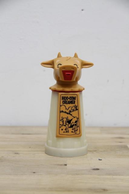 「ム〜カウクリーマー(Moo-Cow Creamer)」として知られる、アメリカのWhirley Industries, Inc.によって製造されたヴィンテージのプラスチック製クリーマーディスペンサーです。
