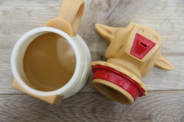 用途: コーヒーや紅茶用のミルク(クリーマー)を注ぐための容器ですが、そのユニークなデザインから、当時は子供向けのシッピーカップ(取っ手付きマグ)としても人気がありました。