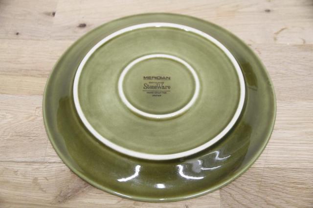 1970年代のMADE IN JAPANの食器。MERIDIAN/GENUINE StoneWare/HAND CRAFTED JAPANの刻印が裏に入っています。