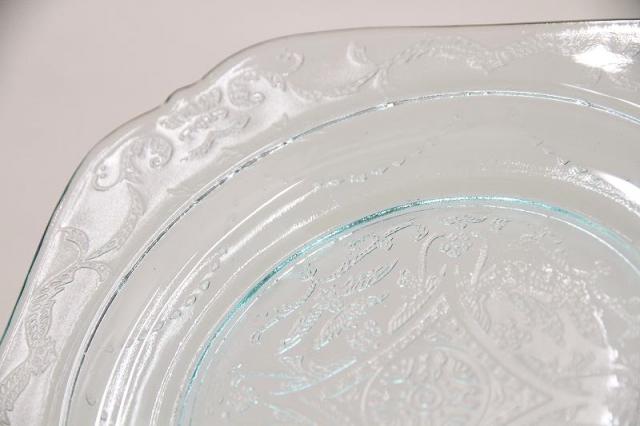 細かい刻印が施されており、高級感があるプレートになっております。淡い青のグラスを是非お試し下さい。
