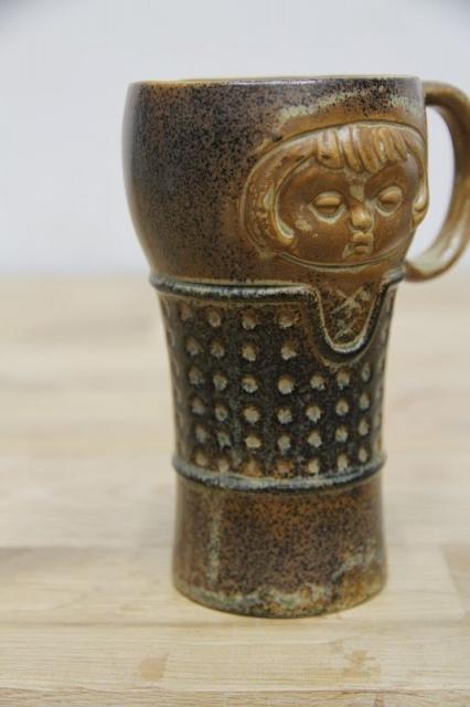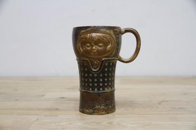 女の子の顔がデザインされていて、可愛らしいマグカップになっております。高さもあるため、花瓶の様に使ってもオススメのアイテムです。