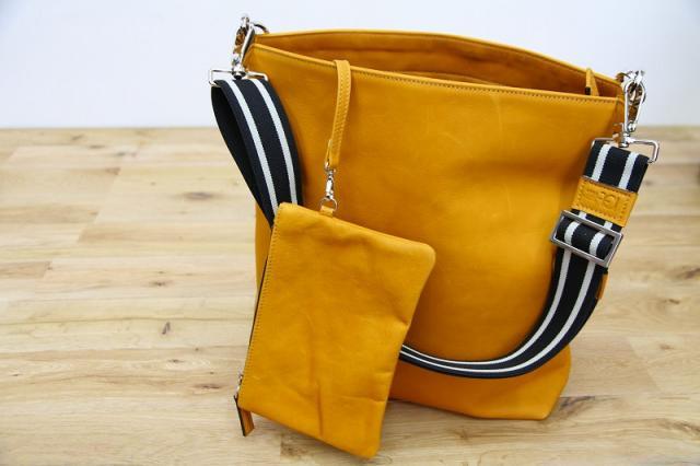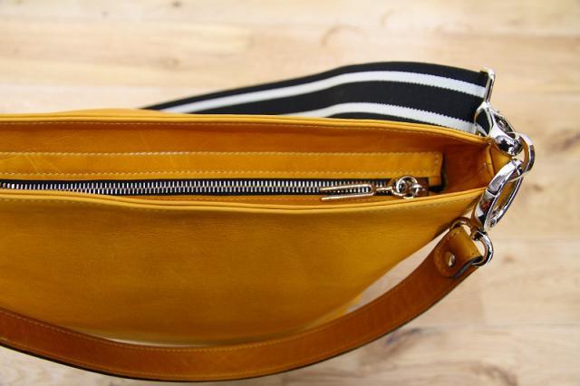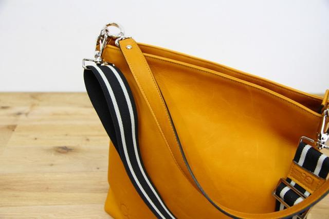 イタリアの上質なレザーと、美しいカラーで伸縮性のあるショルダーストラップが象徴的な、ELENA LERAのショルダーバッグです。