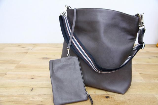 イタリアの上質なレザーと、美しいカラーで伸縮性のあるショルダーストラップが象徴的な、ELENA LERAのショルダーバッグです。