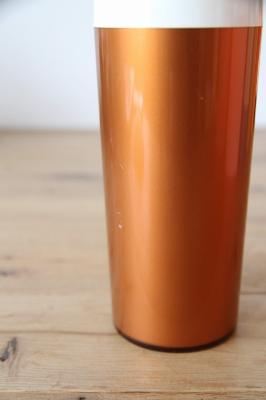 深みのあるメタリックオレンジ(コッパー系カラー)と、清潔感のあるホワイトのコントラストが目を引くミッドセンチュリー期らしいデザイン。 底面には「MADE IN U.S.A.」の刻印があり、当時のプラスチック成型技術の高さと、古き良きアメリカのライフスタイルを感じさせます。