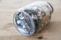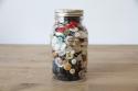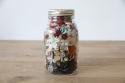 長い年月をかけて集められた、色とりどりのボタンがぎっしりと詰まったガラス瓶です。