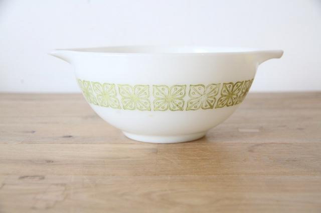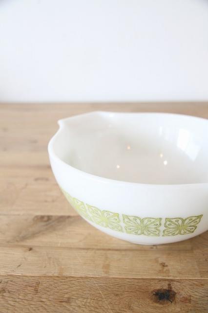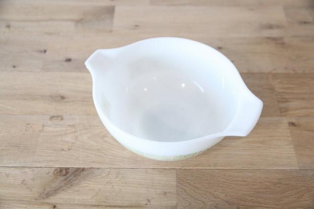 ぽってりとした乳白色のミルクガラスは丈夫で、当時のパイレックスならではの質感。