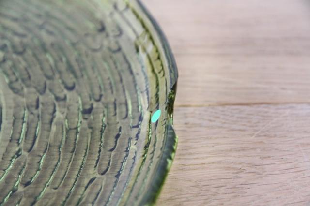 デザイン: プレスガラスによる、存在感のあるボコボコとした手触りのテクスチャー。