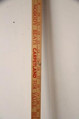 アメリカのカーペット専門店「Carpetland USA」の広告が入った、ヴィンテージの木製ヤードスティックです。